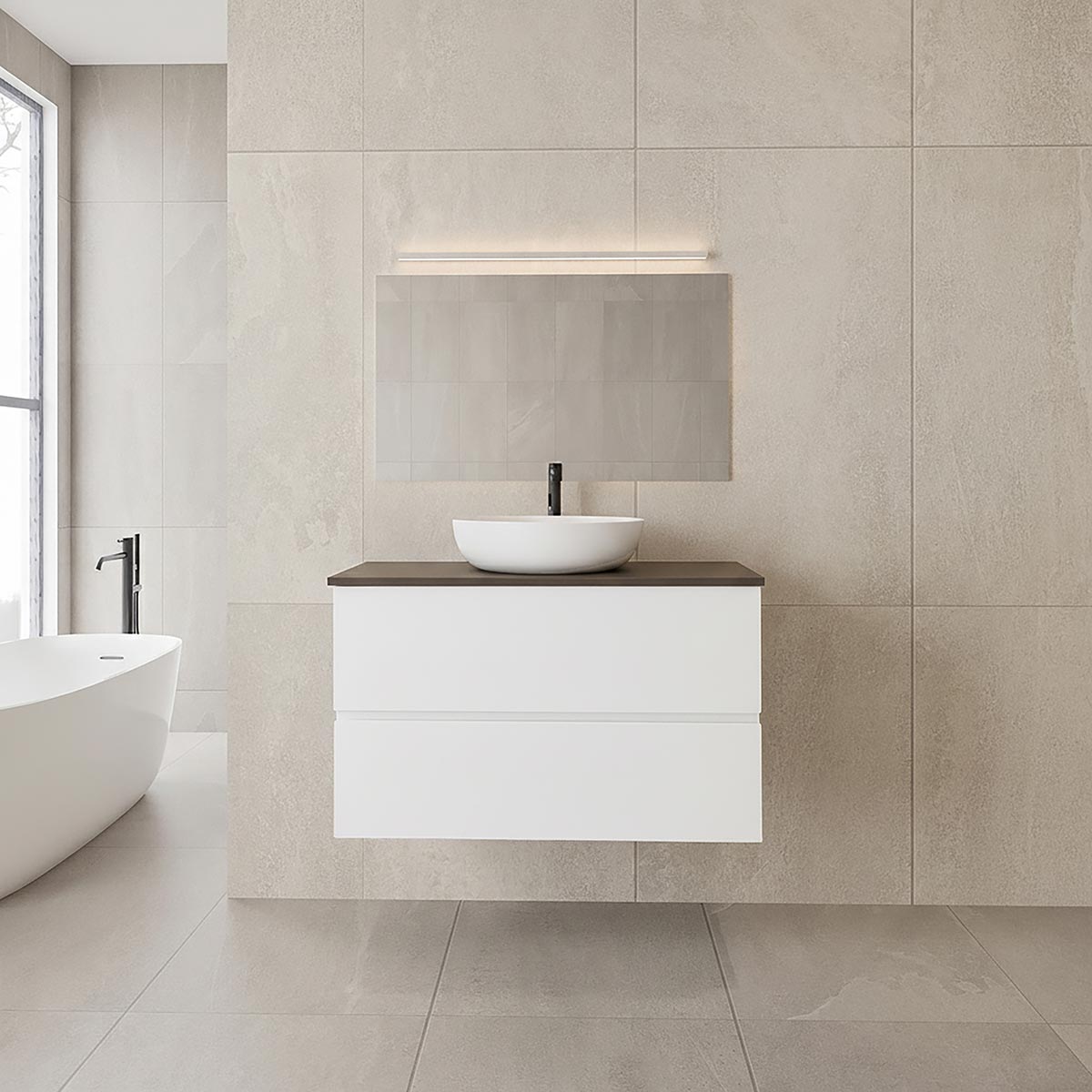 ארונות אמבטיה עם משטח פורצלן