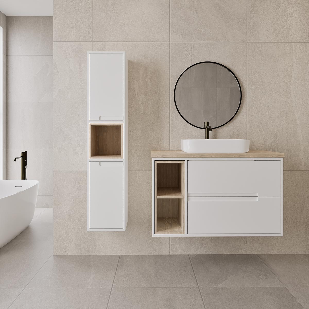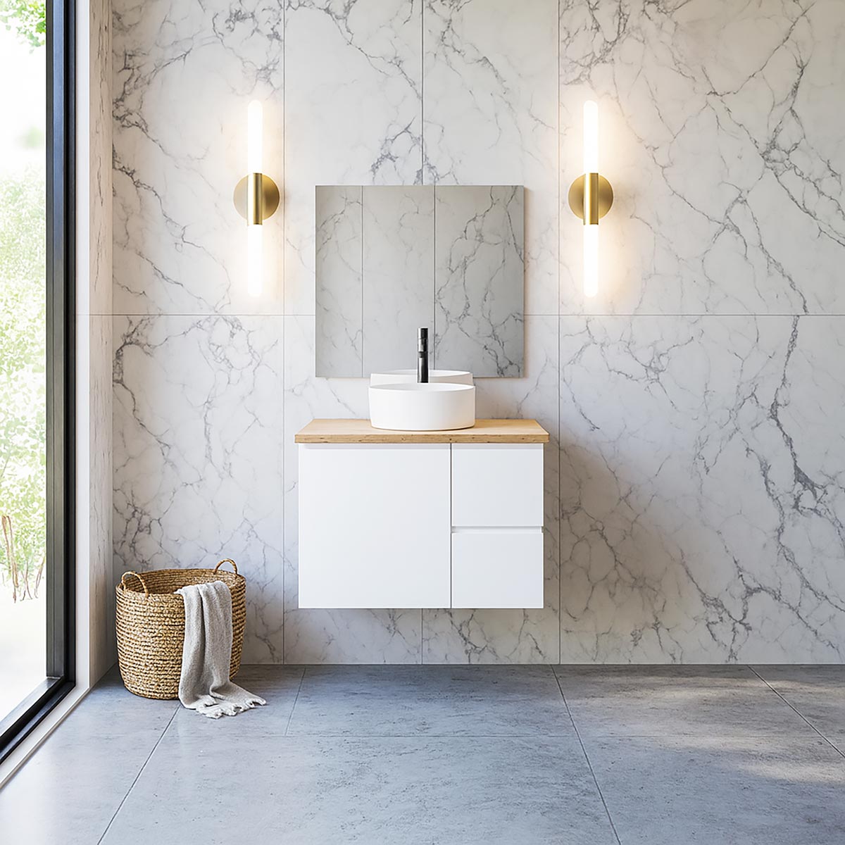 ארונות אמבטיה עם משטח פורצלן